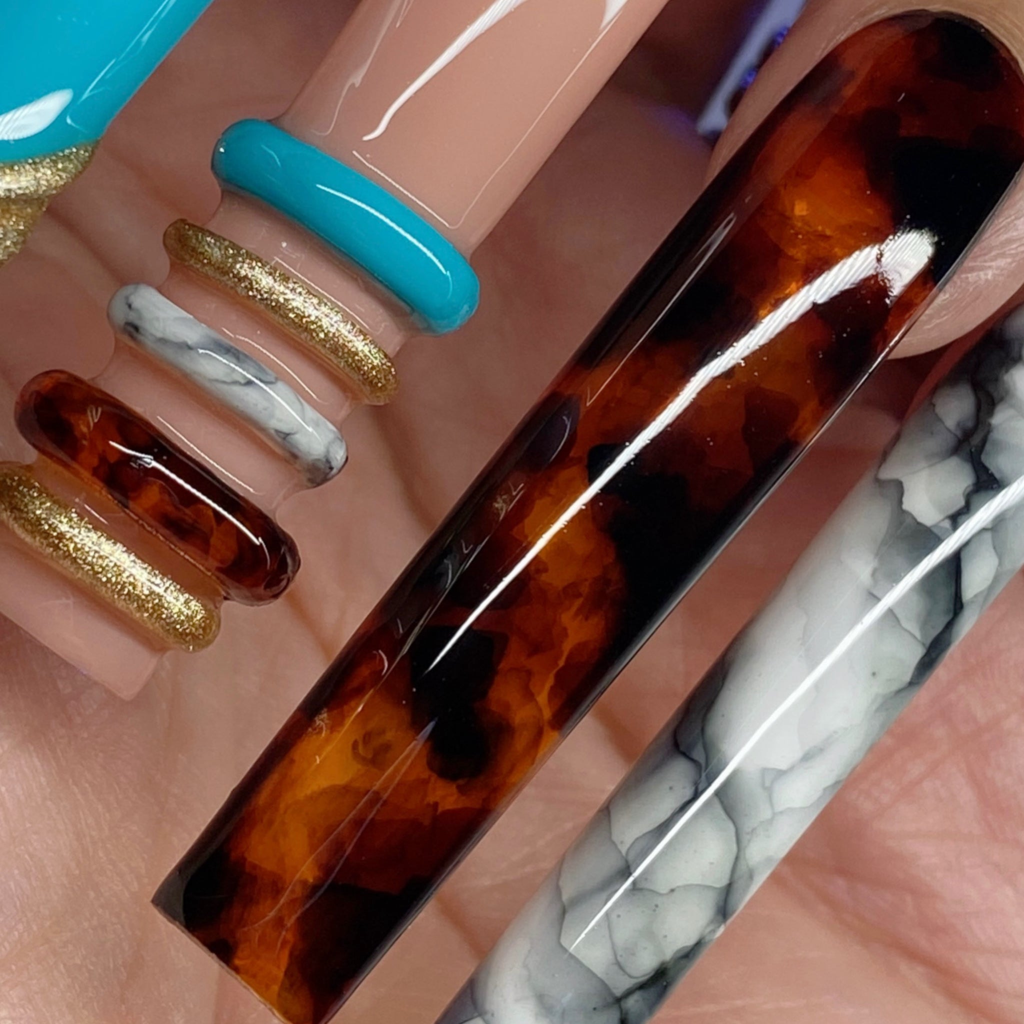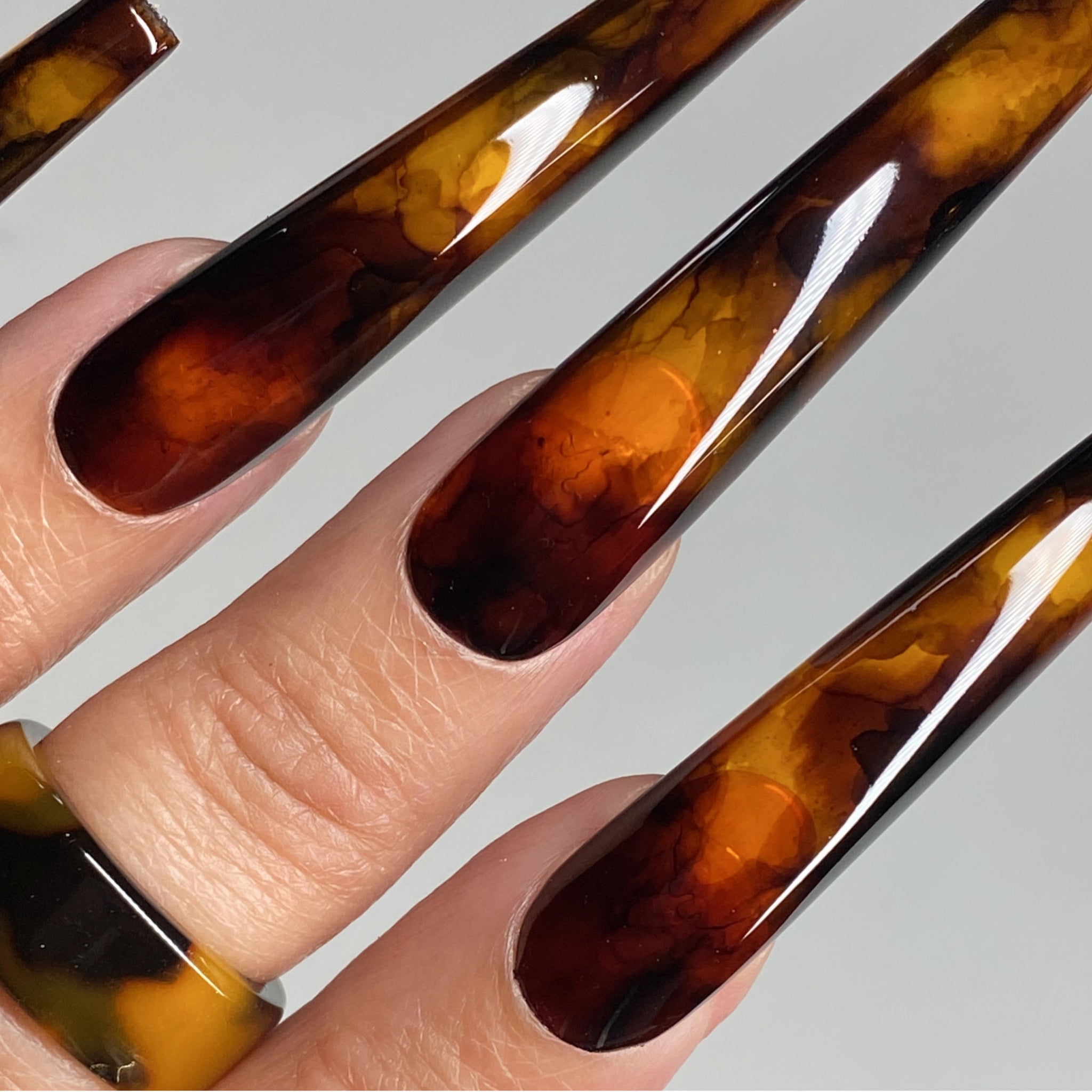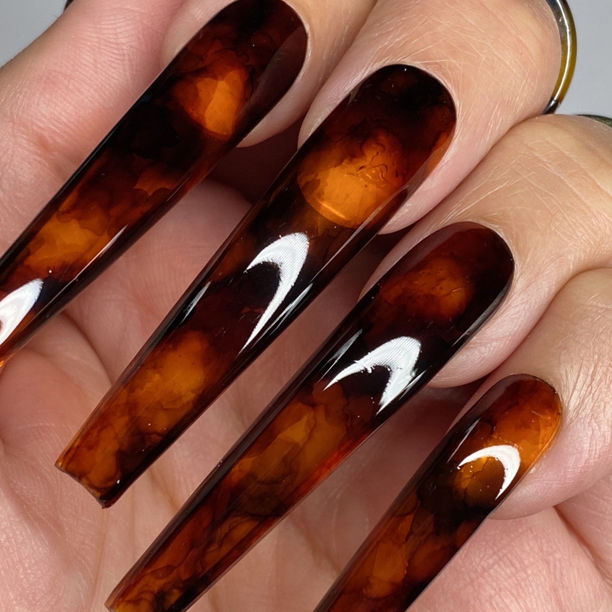 - Using Marble Queen Inks Mahogany put random splotches on nail.